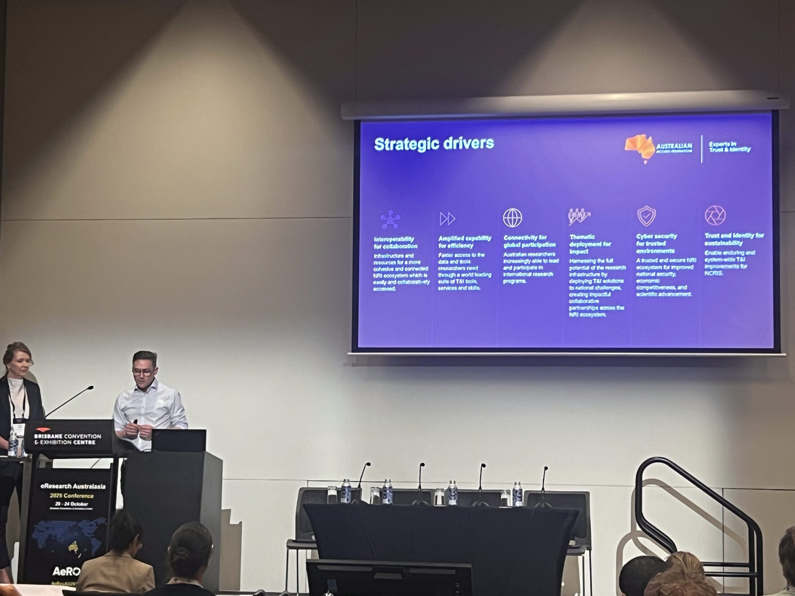 Heath Marks AAF’s CEO and Margie Jantti AAF’s DCEO, presented the Australian Trust and Identity Roadmap for National Research Infrastructure: Connecting Australia’s national digital research ecosystem simply and securely at the eResearch Australaisa Conference 2025